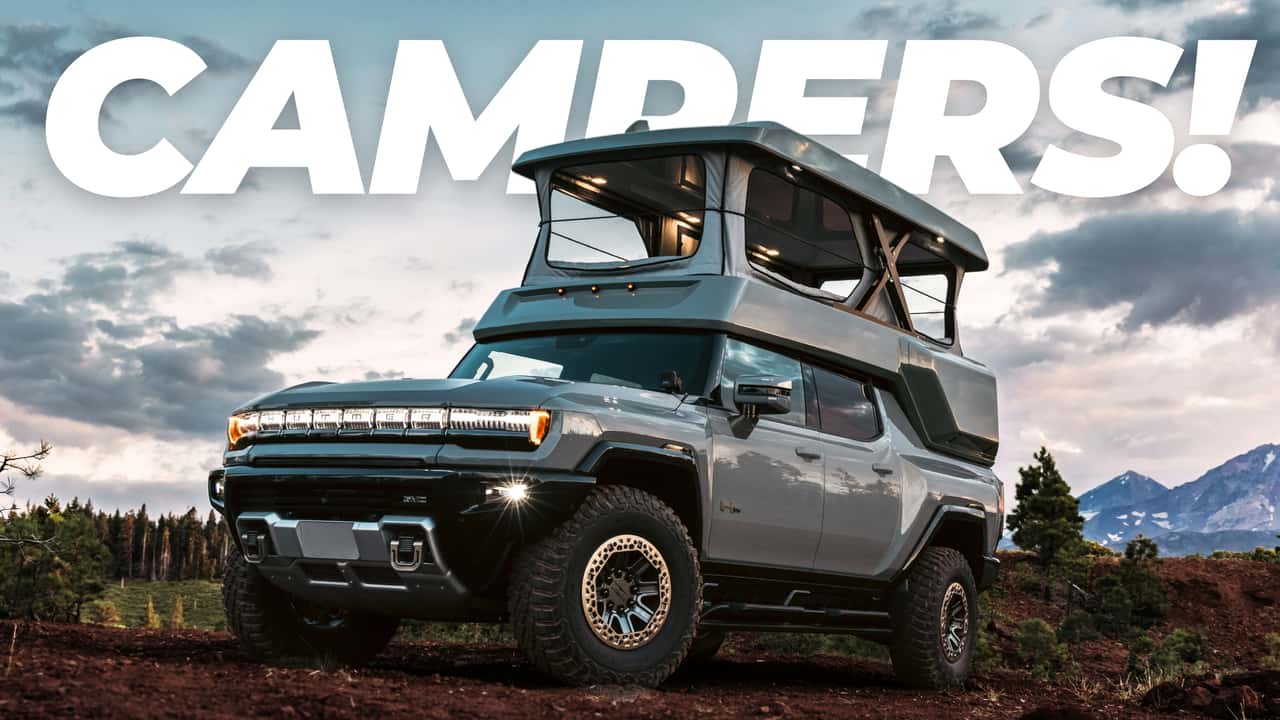 One doesn’t simply stop at the local camper dealership to get a drop-in topper for the GMC Hummer EV. EarthCruiser stepped in to offer a solution, and it’s a pretty innovative one at that. There isn’t much room in the Hummer’s bed, so this appropriately named GMC Hummer EarthCruiser gets a streamlined carbon fiber bed shell with a pop-up roof that creates 80 inches of headroom. There’s a small shower and toilet, and since it’s designed for an electric truck, it has a 605-watt onboard solar power system.