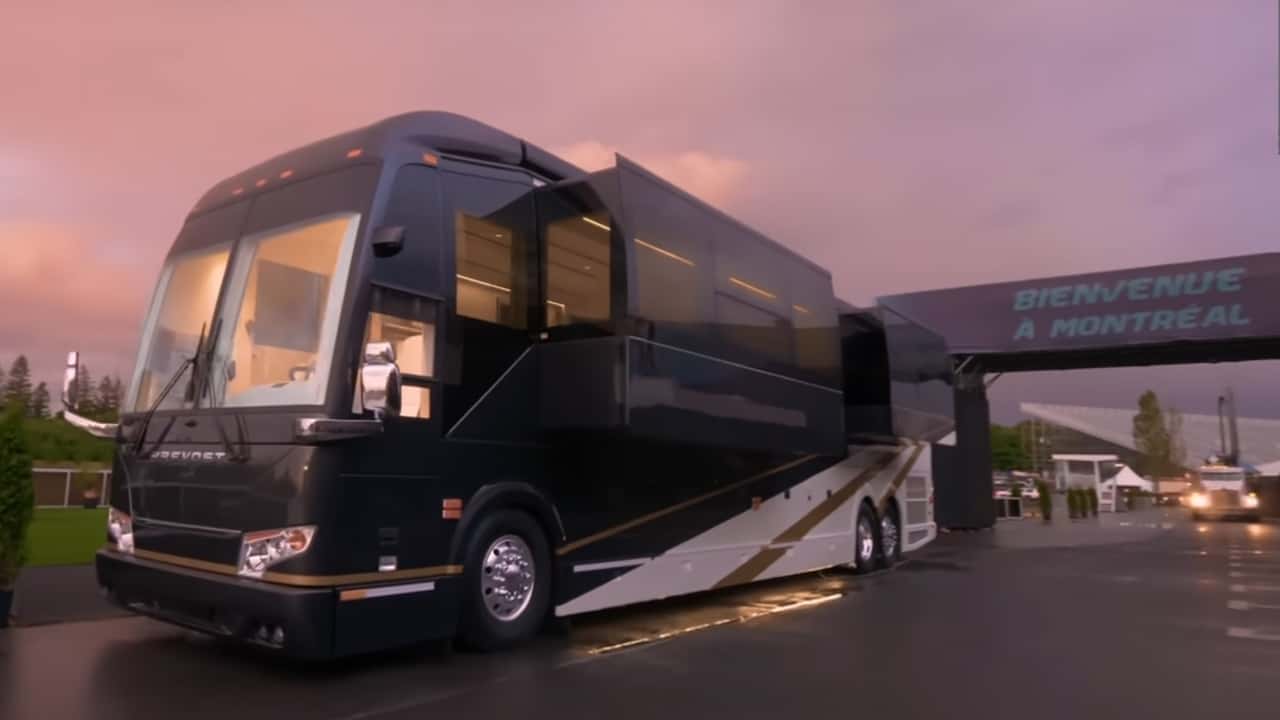 What does a multi-million-dollar motorhome look like? We get a tour from Erik Van Conover on YouTube, who spent time with the RV at this year’s Canadian Grand Prix. For starters, the front seats alone are $20,000 each. Push a button on one of ten tablets mounted through the interior and a 65-inch TV drops down from the roof. Another button will raise a 50-inch TV in the master bedroom. And while you’re relaxing outside, a 55-inch screen slides out from one of many exterior compartments. If you can’t see the racing action live, there’s no excuse for missing it on TV.