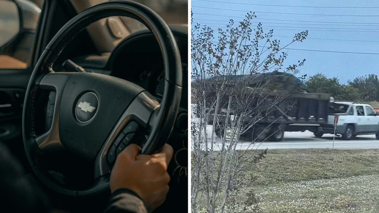 A man couldn’t believe his eyes when he spotted a Chevy Avalanche towing a massive load on his commute.